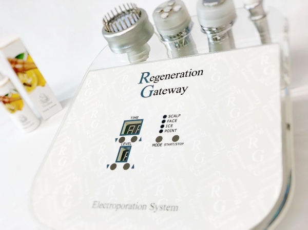 がん治療の研究から生まれたエレクトロポレーションという浸透技術に、冷やしながら/温めながら調整をし、導入できるクライオ技術(40℃~0℃まで調節可能)を組み合わせて、頭皮には高濃度の発毛成分。